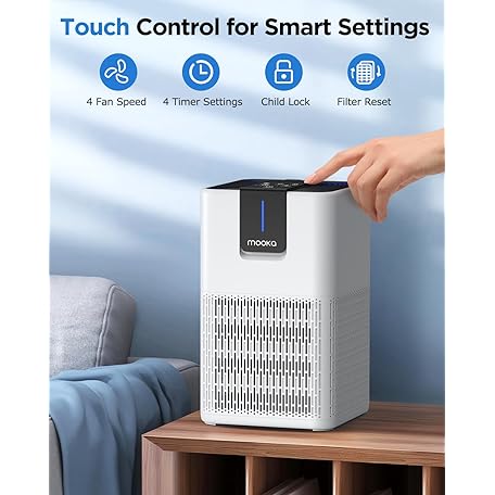 Thương hiệu MOOKA là cái tên nổi tiếng được rất nhiều khách hàng trên thế giới chọn lựa. Với kiểu dáng đẹp mắt, sang trọng, sản phẩm Air Purifiers for Home Large Room Up to 1250 Ft²,MOOKA H13 HEPA Air Purifier for Pets Dust Odor Smoke,Aromatherapy Function,Air Cleaner with 15dB Quiet Sleep Mode for Bedroom Office Living (White) là sự lựa chọn hoàn hảo nếu bạn đang tìm mua một món cho riêng mình.
