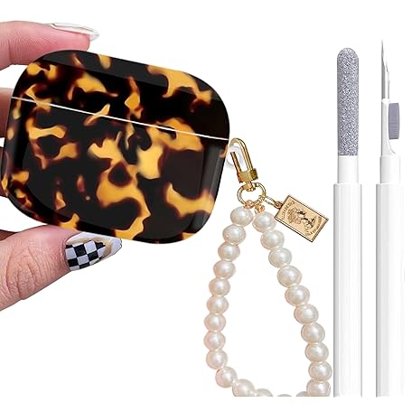 Airpods Pro 2nd/1st Generation Case with Cleaner Pen, Shell Pattern Airpods iPod Pro 2 Gen Cover Protective Skin Girl Women with Luxury Pearl Keychain 2023/2022/2019 - Tortoiseshell