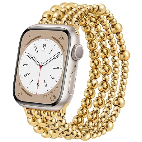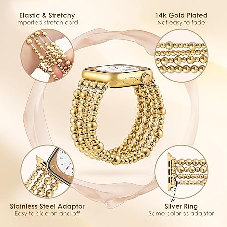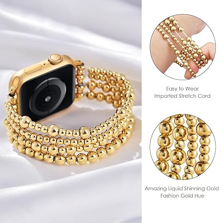 Sản phẩm AIRSPO Gold Beaded Bracelets Compatible for Apple Watch Band 38mm 40mm 41mm 42mm 44mm 45mm Women, Fashion Handmade Dressy iPhone Watch Bands Elastic Strap for iWatch Series SE 8 7 6 5 4 3 2 1 đang được bán với giá ưu đãi là $32.8635 tại nước Anh.