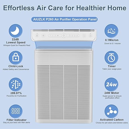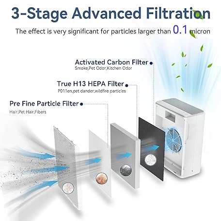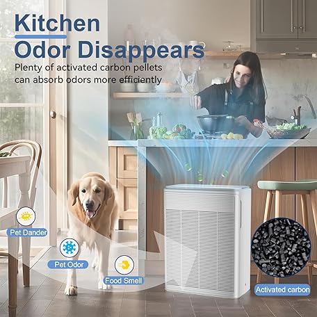 Thông tin sản phẩm AIUZLK Air Purifier for Home Large Rooms Up to 2000 Ft²,3-in-1 H13 HEPA for Pet Dander,Hair and Smoke,22dB Ultra-Quiet Operation for Bedroom,Living room,office (White)