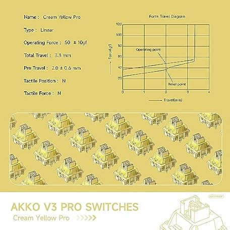 Thông tin sản phẩm Akko V3 Pro Cream Yellow Mechanical Keyboard Switch, Linear Switches, 5 Pin 50gf RGB LED Slot, Transparent Cover, MX Key Switches for DIY Kit/Gamer Barebones Keyboard (45 Pcs)