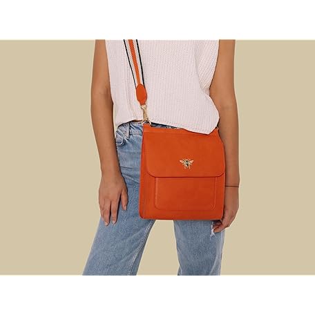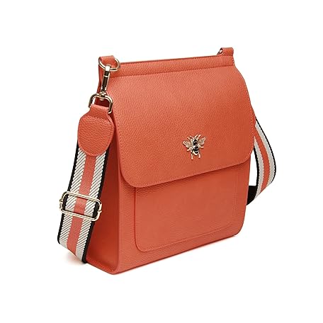Sản phẩm Alice Wheeler Large Bloomsbury Crossbody Bee Bag with striped strap (Orange) đang được bán với giá ưu đãi là $59.7647 tại nước Anh.