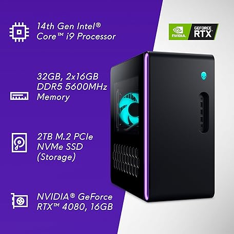 Thương hiệu Alienware là cái tên nổi tiếng được rất nhiều khách hàng trên thế giới chọn lựa. Với kiểu dáng đẹp mắt, sang trọng, sản phẩm Alienware Aurora R16 Liquid Cooled Gaming Desktop - Intel Core 9-14900KF, 32GB DDR5 RAM, 2TB SSD, NVIDIA GeForce RTX 4080, Intel Wi-Fi 6E, Windows 11 Home - Basalt Black là sự lựa chọn hoàn hảo nếu bạn đang tìm mua một món cho riêng mình.