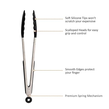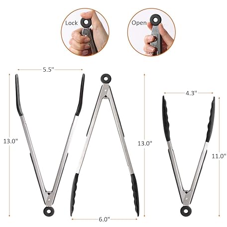 Thông tin sản phẩm Alimat PluS Kitchen Tongs Set of 3, Cooking Tongs with Stainless Steel, Silicone Tongs for Serving, Nonstick Food Tongs(9+12+12inches)