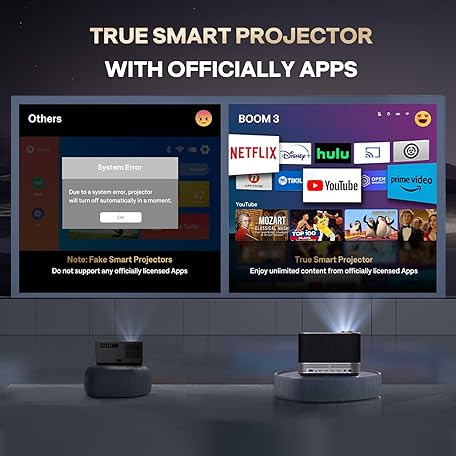Thông tin sản phẩm All-ln-One Projector 4K, AURZEN Boom 3 Smart Projector with NetfIix-Officially-Licensed 3D DoIby Audio, Auto Focus & Keystone, HDR 10 60Hz WiFi and Bluetooth Home Outdoor Portable Projector
