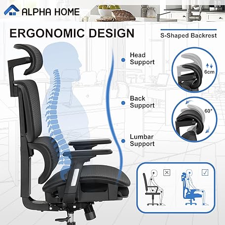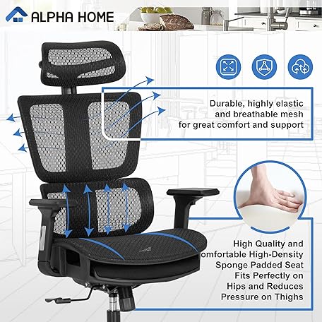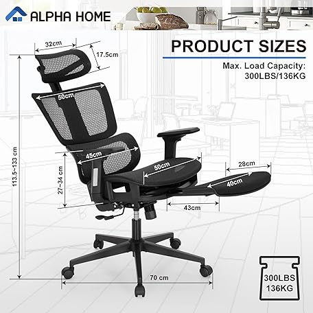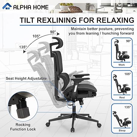 Thông tin sản phẩm ALPHA HOME Office Chair Ergonomic Desk Chair with Retractable Footrest High Back Manager Chair Computer Home Office Chair 90-130° Tilt Angle with 3D-Armrest,Adjustable headrest,Lumbar Support