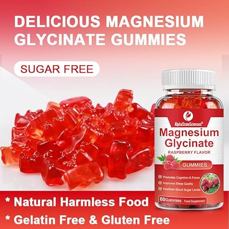 Thông tin sản phẩm AlphaStateSciences Magnesium Bliss: Raspberry Gummy Bears for Enhanced Focus, Restful Sleep, and Balanced Blood Sugar (500mg Magnesium Glycinate) - 60 Gummies