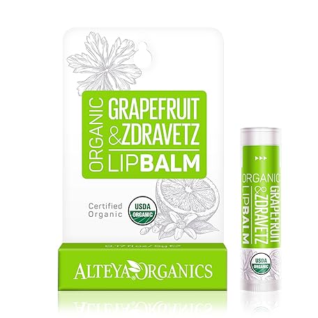 Alteya Organic Lip Balm Grapefruit & Zdravetz Oil 4.5 g -USDA Certified Organic Pure Natural Lip Care Based on a Carefully Selected Bouquet of Hydrating and Nourishing Botanical Oils and Butters