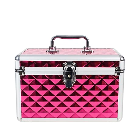 Aluminium Hard Make Up Travel Storage Box Cosmetic Beauty Vanity Case Organiser (Fucshia Pink)