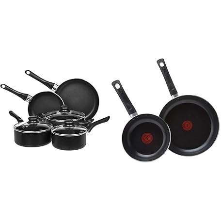 Amazon Basics 8-Piece Non-Stick Cookware Set, Black & Tefal Taste Twin Pack, Aluminium Frying Pans, Pan Set, Pans 20 cm and 28 cm Diameter, Non-Stick, Black, Pack of 2, B189S244
