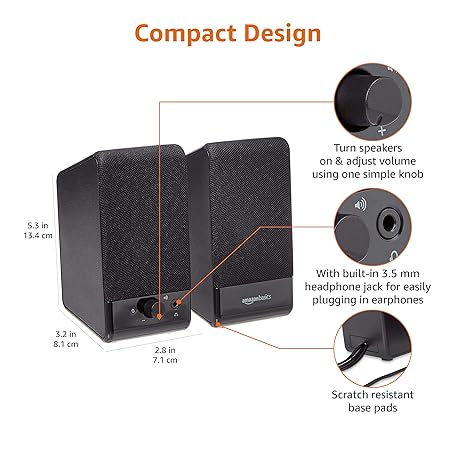 Sản phẩm Amazon Basics Computer Speakers For Desktop or Laptop PC, USB-Powered, Black đang được bán với giá ưu đãi là $17.7016 tại nước Anh.