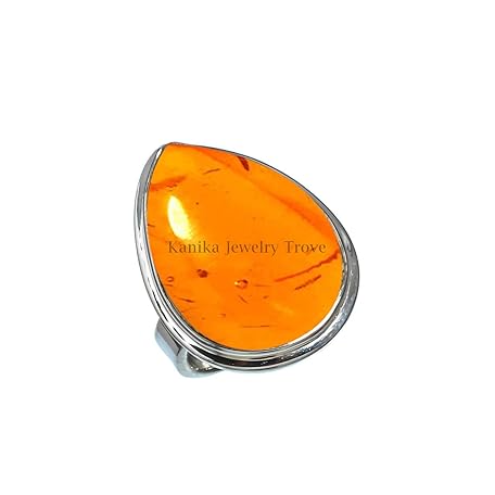 Amber Solid 925 Sterling Silver Handmade Statement Rings For Womens, Valentines Day Gift Jewelry