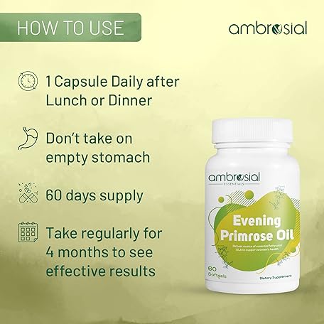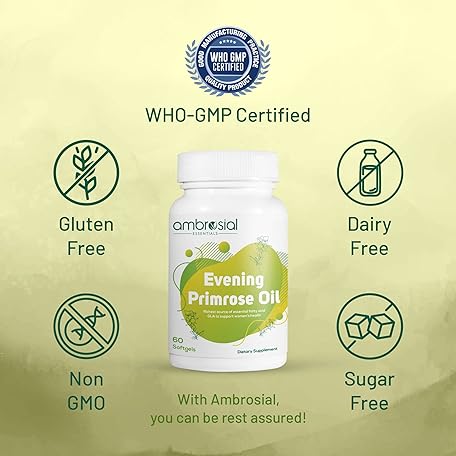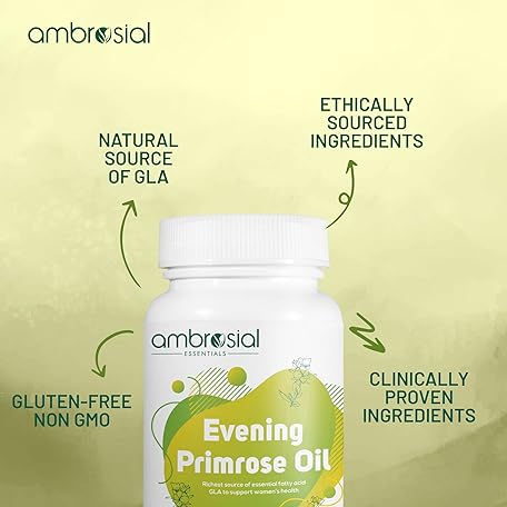 Thông tin sản phẩm AMBROSIAL Evening Primrose Oil 1000mg Softgel- High Strength EPO, Cold-Pressed, Gluten Free, Perimenopause Supplements, Rich in Omega 6, GLA, Hormone Balance for Women, for Healthy Skin, 60 Capsules