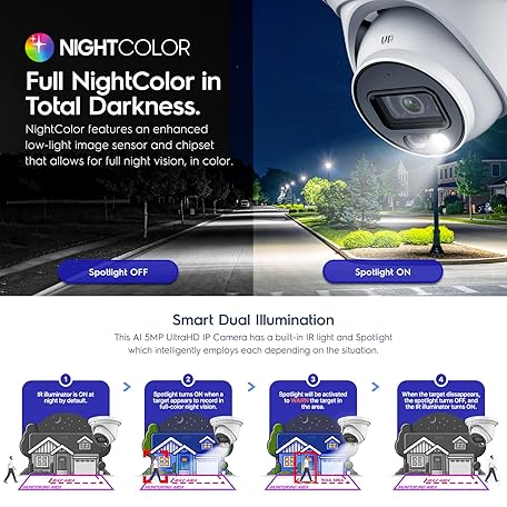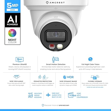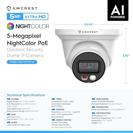 Thông tin sản phẩm Amcrest 5MP AI Turret IP PoE Camera w/ 49ft Nightvision, Security IP Camera Outdoor, Built-in Microphone, Human & Vehicle Detection, Active Deterrent, 129° FOV, 5MP@20fps IP5M-T1277EW-AI