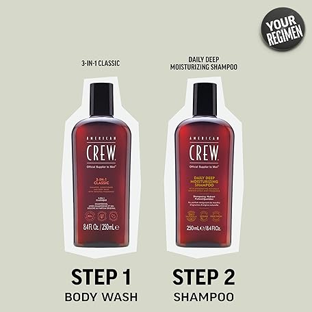 Thông tin sản phẩm American Crew Daily Deep Moisturising Shampoo, Vegan & Silicone Free (250ml) to Nourish & Detangle Hair, Normal & Dry Hair, Formulated for Men