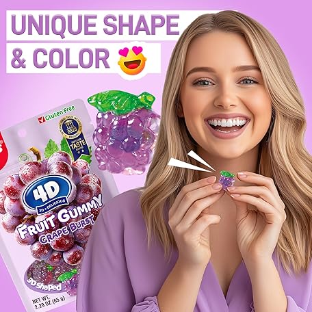 Sản phẩm Amos 4D Gummy Sweets Fruit Gummy Grape Burst, Jelly-Filled Grape Candy, Natural Flavor - Resealable 2.29oz Bag (Pack of 3) đang được bán với giá ưu đãi là $14.0501 tại nước Anh.