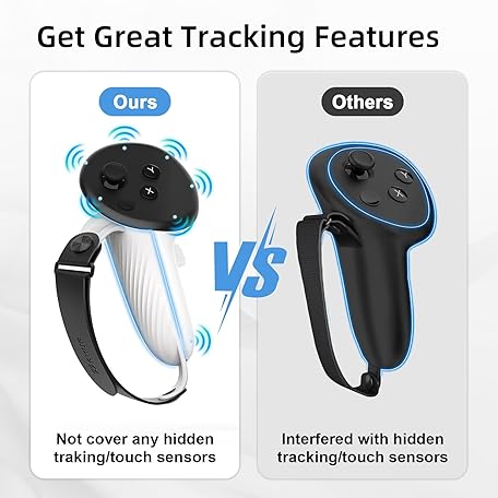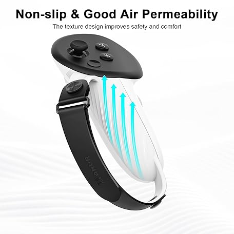 Thông tin sản phẩm AMVR Controller Grips Compatible with Meta/Oculus Quest 3, Silicone Accessories Non-Slip Handle Cover, Adjustable Soft Hand Strap Fits Small and Medium Hands (Not Fit Official Charging Dock Battery)