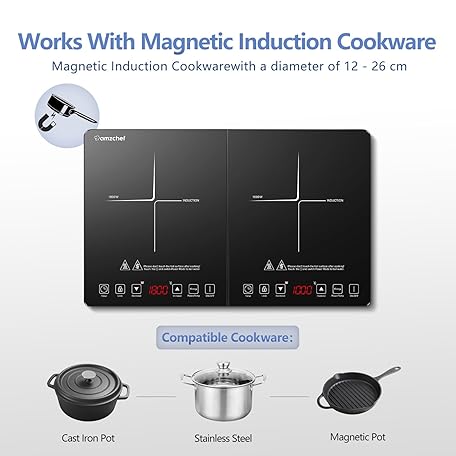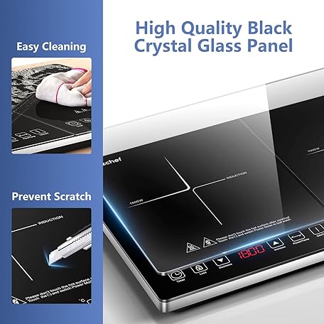 Thông tin sản phẩm AMZCHEF Double Induction Hob, Induction Cooker with Portable Ultra-thin Body, Independent Control,10 Temperature, Multiple Power Levels, 2800W, 3-Hour Timer, Safety Lock