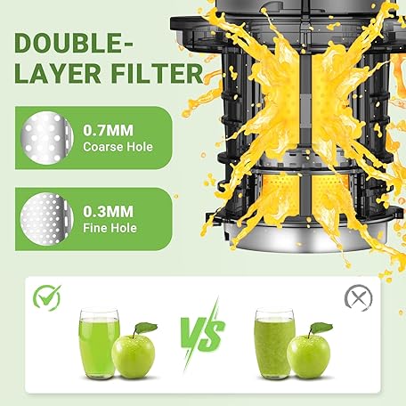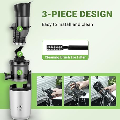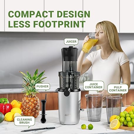 Thông tin sản phẩm AMZCHEF Whole Fruit Juicer Machines, 80MM Diameter Slow Masticating Juicer, Powerful Cold Press Juicers with Upgrade Auger, Double-Layer Filter, Retro Toggle Switch, Quiet Motor, Silver