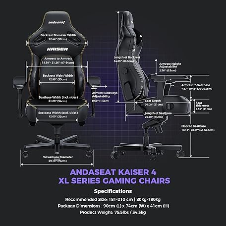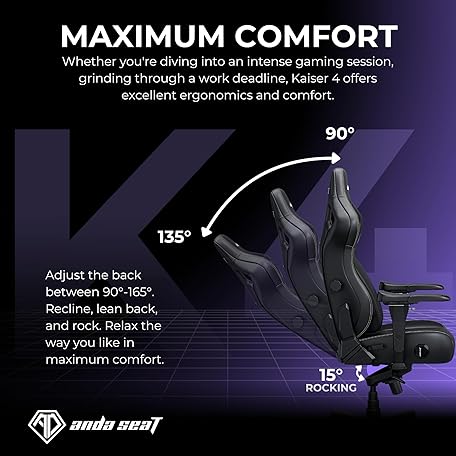 Thông tin sản phẩm Anda Seat Kaiser 4 Gaming Chair for Adults - XL Reclining Video Game Chairs with 4-Level Pop-Out Lumbar, Stain-Resistant Faux Leather, Heavy Duty Neck & Back Support - Purple Ergonomic Gaming Chair