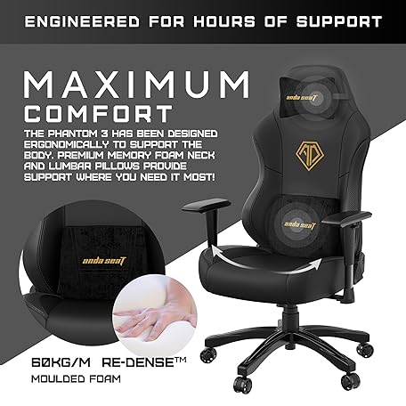 Thông tin sản phẩm Anda Seat Phantom 3 Gaming Chair - Reclining Video Game Chairs, Ergonomic Gaming Chair, Neck & Lumbar Back Support for Home & Office Desk - Large Premium Black PVC Leather Gamer Chairs for Adults