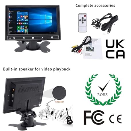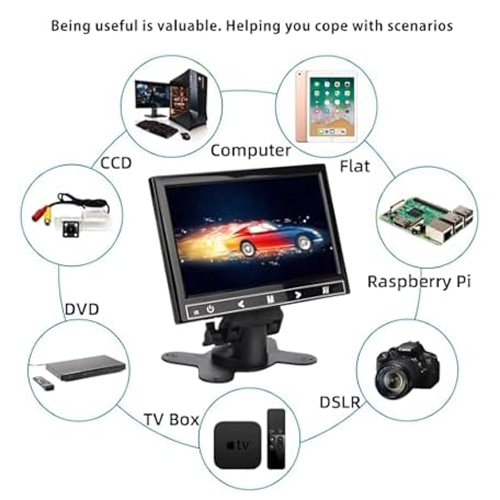Thông tin sản phẩm ANDUBEST CCTV Small Monitor 7 inch, 1024X600, 60Hz, 5ms Built-in Speakers, Small Screen w/VGA/AV/HDMI Input,Raspberry Pi Monitor w/Remote Control, Portable Monitor