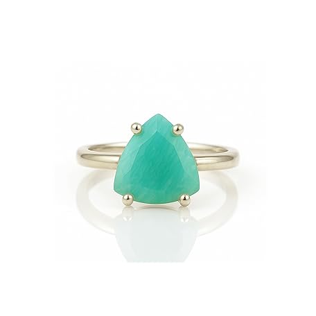 Anemone Amazonite Ring - Trilliant Gemstone Rings, Crystal Healing Rings, Cocktail Rings, Solitaire Rings, Boho Jewelry for Women - Customizable Fashion and Gift Jewelry for Her