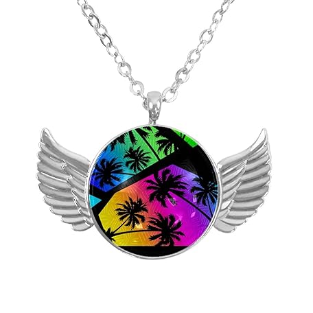 Angel Wings Necklace with Hibiscus Flower, Zinc Alloy Pendant Jewelry Gifts for Men Women