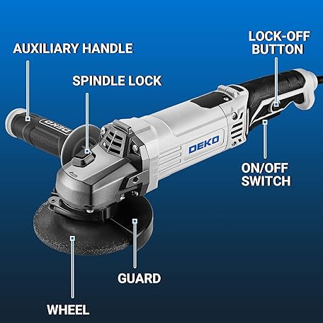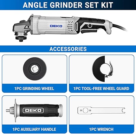 Thông tin sản phẩm Angle Grinder Electric Power Tool: DEKOPRO 900W 115mm Hand Corded Angle Grinder Power Grinders Tools with Grinding Wheel, Disc for Metal, Wood, Hard Case