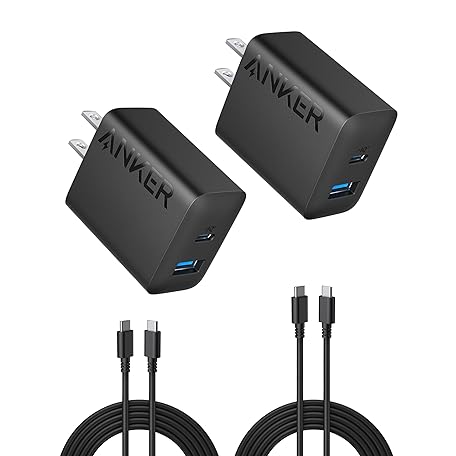 Anker 2-Pack 20W Dual Port USB Fast Wall Charger, USB C Charger Block for iPhone 15/15 Pro/15 Pro Max/iPad Pro/AirPods and More (2-Pack 5 ft USB-C Cable Included)