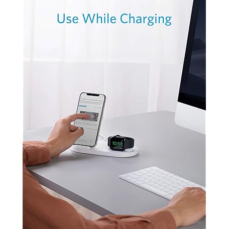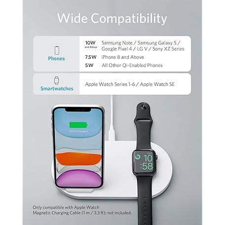 Thông tin sản phẩm Anker Wireless Charging Station, PowerWave Sense 2-in-1 Stand With Watch Charging Holder for Apple Watch SE/6/5/4/3/2/1, iPhone 12/12 Pro/12 Pro Max/SE (Charging Cable & AC Adapter Not Included)