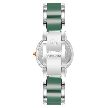 Anne Klein Women's Premium Crystal Accented Ceramic Bracelet Watch, Green/Silver, bracelet