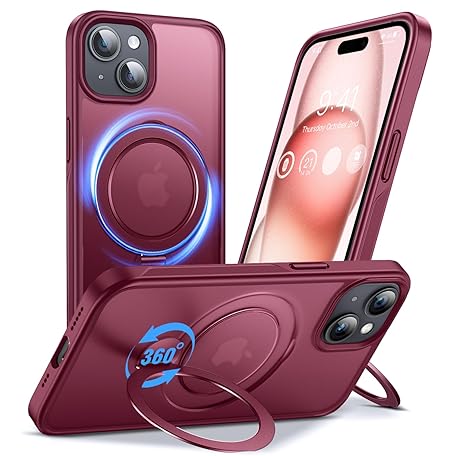 Anqrp 360° All-in-ONE Stand Case for iPhone 15 Case with Rotatable Magnetic Kickstand Ring Holder, Compatible with Mag-Safe, MIL-Grade Shockproof iPhone 15 Phone Case Cover 6.1", Red