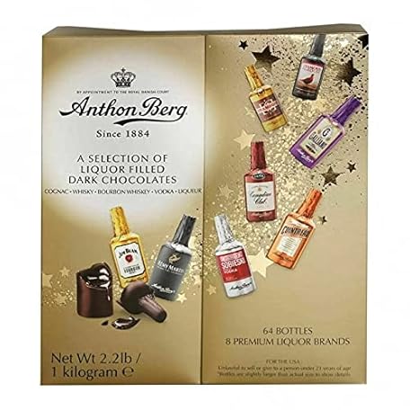 Sản phẩm Anthon Berg Chocolate Liquor Chocolates Gift Set - Pack of 64 Premium Bottle-Shaped Original Dark Liqueurs - 8 Famous with Free Christmas Card or Keyring đang được bán với giá ưu đãi là $45.4203 tại nước Anh.