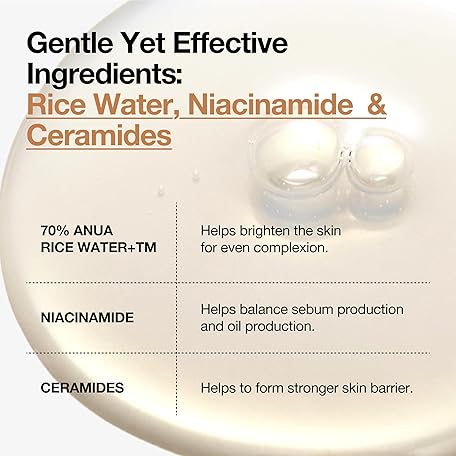 Thông tin sản phẩm ANUA Rice 70 Glow Milky Toner, for Glass Skin, Rice Water, Niacinamide, Ceramides, Panthenol, Non comedogenic, Fungal Acne Safe, Korean Skin Care, 250ml/8.45fl.oz.