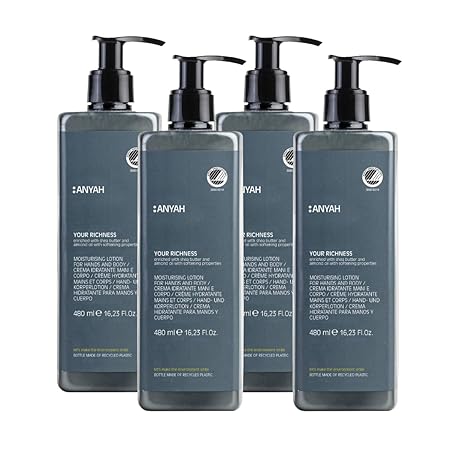 ANYAH Body Lotion & Moisturiser – Fragrance-Free Hydration for Dry, Sensitive & Mature Skin – Organic, Vegan, Eco-Friendly, Nordic Ecolabel Certified, 4 x 480 ml