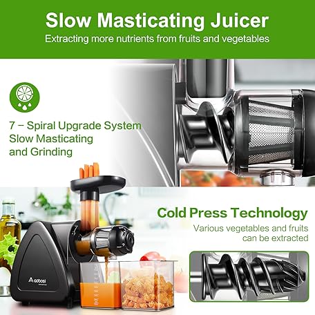 Thông tin sản phẩm AOBOSI Cold Press Juicer Machines with Reverse Function, Slow Masticating Juicer with Quiet Motor, High Juice Yield, Juice Cup Baffle and Brush for Easy Clean, Black