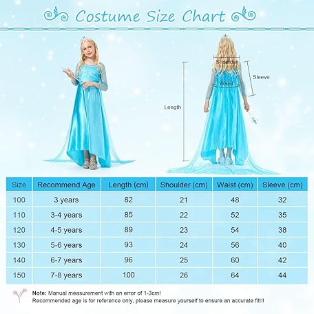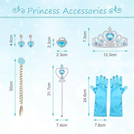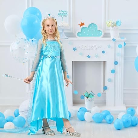 Thông tin sản phẩm AOOWU Dress, Princess Costume with Princess Crown Tiara and Wand, Deluxe Snow Queen Fancy Dress for Girls, Princess Dress Up for Birthday Christmas Halloween Cosplay Party