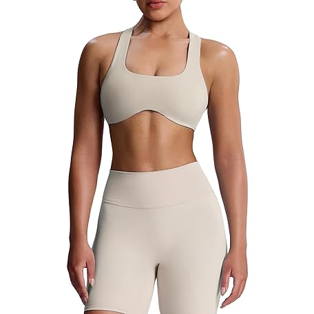 Aoxjox Women's Workout Sports Bras Fitness Define Sculpt Racerback Bra Yoga Crop Tank, Mink, S