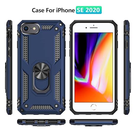 Thông tin sản phẩm Aozuoton iPhone SE 2022/2020, 8/7 Case With HD Screen Protector - Military Grade 16ft. Drop Tested Ring Shockproof Protective Phone Cover, Blue
