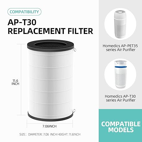 Thông tin sản phẩm AP-T30 AP-PET35 Replacement Filter for HoMedics TotalClean Air Purifier 5-in-1 Air Filter for HoMedics Models AP-T30FL AP-T30WT AP-PET35FL AP-PET35-WT, 5 Layers 3 in 1 Filter 2 Pack