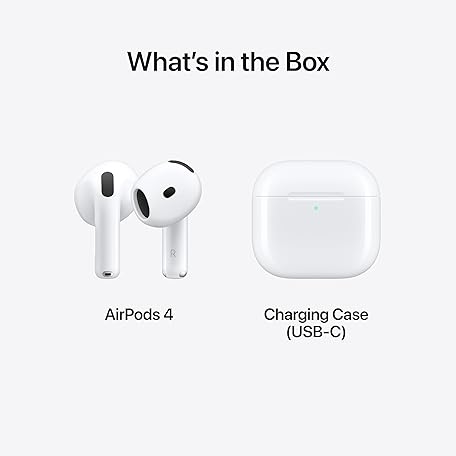Thông tin sản phẩm Apple AirPods 4 Wireless Earbuds, Bluetooth Headphones, Personalised Spatial Audio, Sweat and Water Resistant, USB-C Charging Case, H2 Chip, Up to 24 Hours of Battery Life, Effortless Setup for iPhone