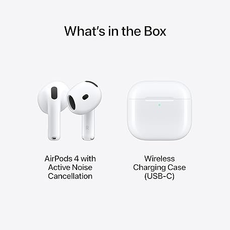 Thông tin sản phẩm Apple AirPods 4 with Active Noise Cancellation, Wireless Earbuds, Bluetooth Headphones, Adaptive Audio, Transparency Mode, Personalised Spatial Audio, USB-C Charging Case, Wireless Charging, H2 Chip