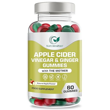 Apple Cider Vinegar Gummies with “The Mother” & Ginger Extract – 60 Vegan Gummies | 500mg ACV + 10mg Ginger per Serving | for Gut Health | Gluten-Free, Non-GMO | Natural Apple Flavor | UK Made