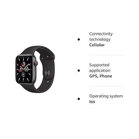 Apple Watch SE 2020 (GPS + Cellular, 44MM) Space Grey Aluminium Case with Black Sport Band (Renewed)