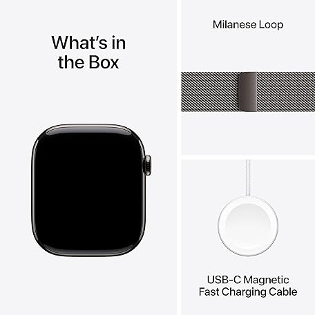 Thông tin sản phẩm Apple Watch Series 10 GPS + Cellular 46 mm Smartwatch with Slate Titanium Case with Slate Milanese Loop - S/M. Fitness Tracker, ECG App, Always-On Retina Display, Carbon Neutral