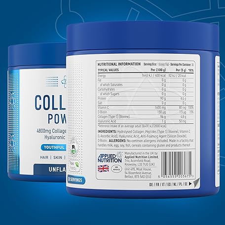 Thông tin sản phẩm Applied Nutrition Collagen Powder - Hydrolysed Bovine Collagen Protein, Halal, Healthy Skin, Hair, Nails (Unflavoured) (150g - 30 Servings)