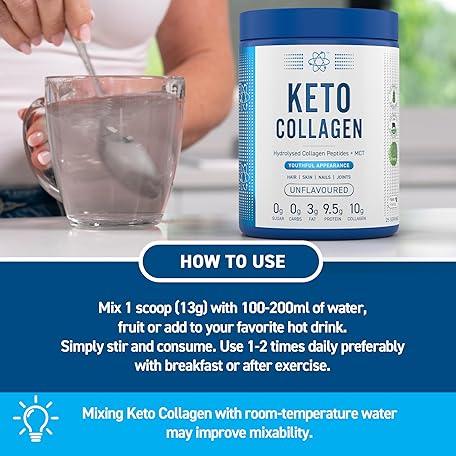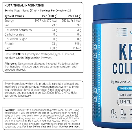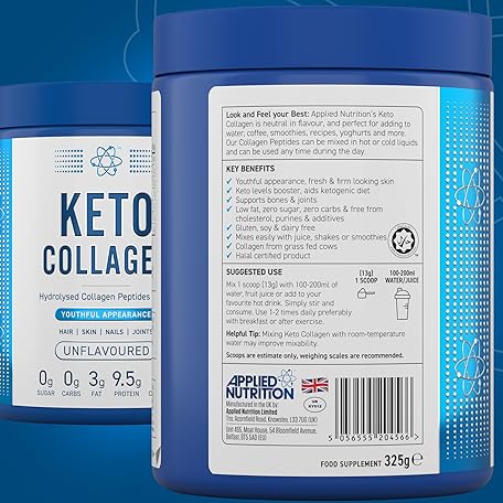 Thông tin sản phẩm Applied Nutrition Keto Collagen Protein - Keto Protein Powder with MCT, Ketogenic & Paleo Diet, Zero Sugar & Carbs, Healthy Skin, Hair, Nails (Unflavoured) (325g - 25 Servings)