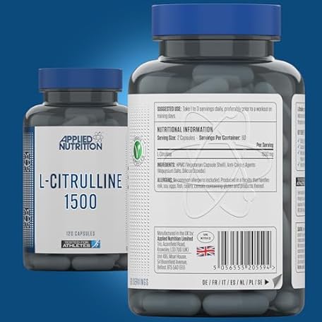 Sản phẩm Applied Nutrition L-Citrulline 1500-1500mg L Citrulline Per Serving, Citrulline Capsules for Muscle Pump, Muscle Recovery Supplement, Increases Levels of L-Arginine and Nitric Oxide - 60 Servings đang được bán với giá ưu đãi là $18.8243 tại nước Anh.