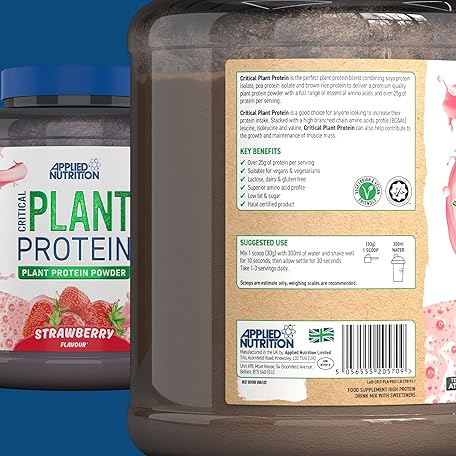 Thông tin sản phẩm Applied Nutrition Plant Protein Powder – Critical Plant Vegan Protein Shake with SOYA, Pea, Brown Rice Proteins & Essential Amino Acids - Dairy-Free Gym Supplement (1.8kg - 60 Servings) (Strawberry)